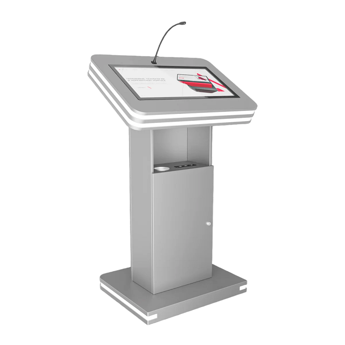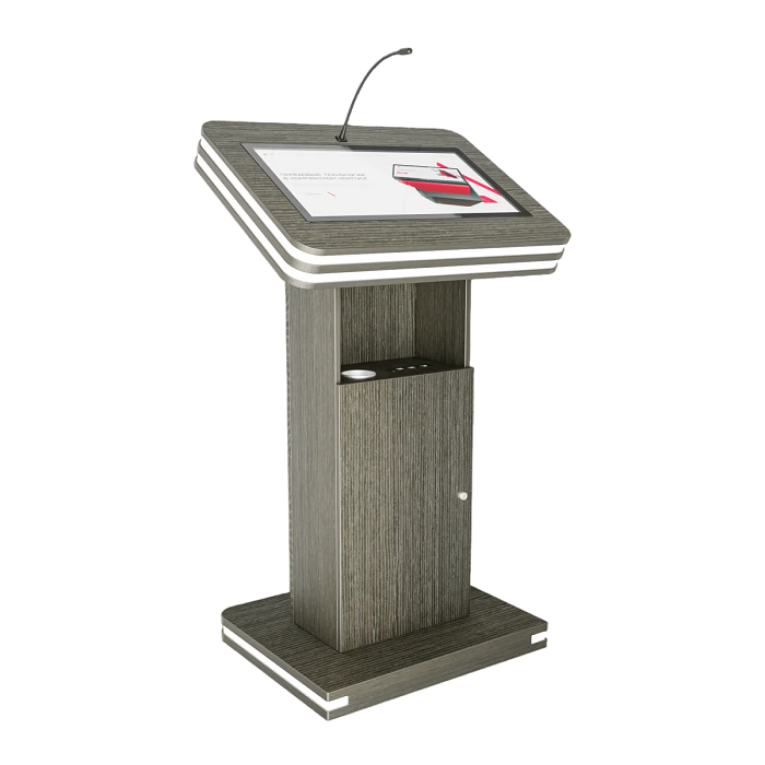 Интерактивная трибуна Light 19" — стильная модель, которая украсит любой бизнес-форум и конференцию. Встроенные микрофоны передают звук на большую аудиторию, удобный интерактивный дисплей с мультитач-системой позволяет отображать необходимую информацию не только для спикера, но и для зрителей, передавая ее на большой экран. Помимо этого, в трибуне есть полочка для воды, а также внешние разъемы. Яркий дизайн корпуса со светодиодным узором не сможет оставить никого равнодушным.