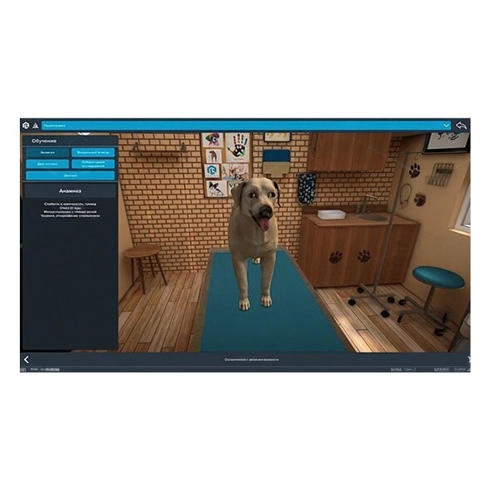 Виртуальный лабораторный комплекс, позволяющий при помощи трехмерной графики и анимации проводить виртуальный осмотр животных, а также инструментальные исследования и диагностику по заранее проработанным сценариям. По каждому сценарию необходимо произвести стандартные процедуры и сформировать первичный диагноз для выбранного животного и выбрать стратегию лечения. Программное обеспечение позволяет выводить на экран интерактивные трехмерные модели диагностируемого животного и имитировать его реакцию на внешний осмотр.