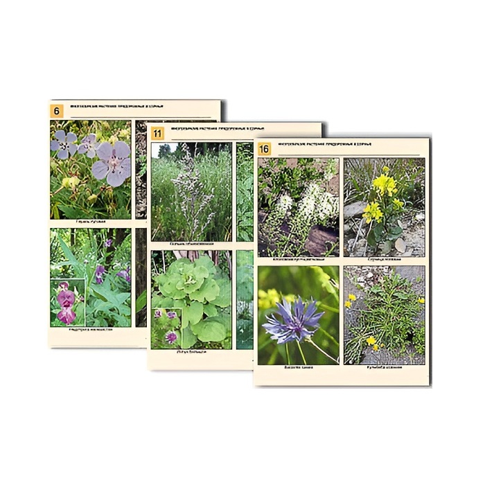 Комплект таблиц по ботанике раздаточных "Многообразие растений. Придорожные и сорные" (16 штук, формат А4, лам)