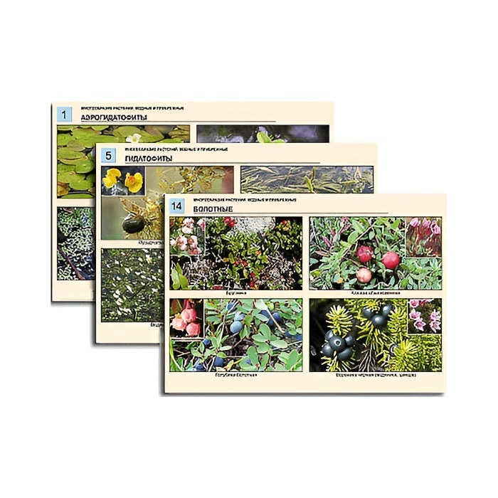 Комплект таблиц по ботанике раздаточных "Многообразие растений. Водные и прибрежные" (16 штук, формат А4, лам)