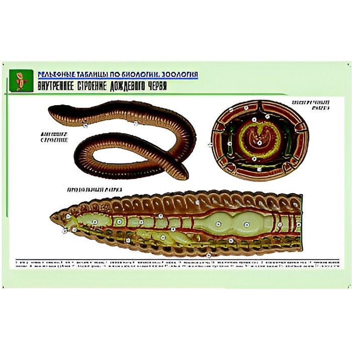 Рельефная таблица "Внутреннее строение дождевого червя" (формат А1, матовое ламинир.)