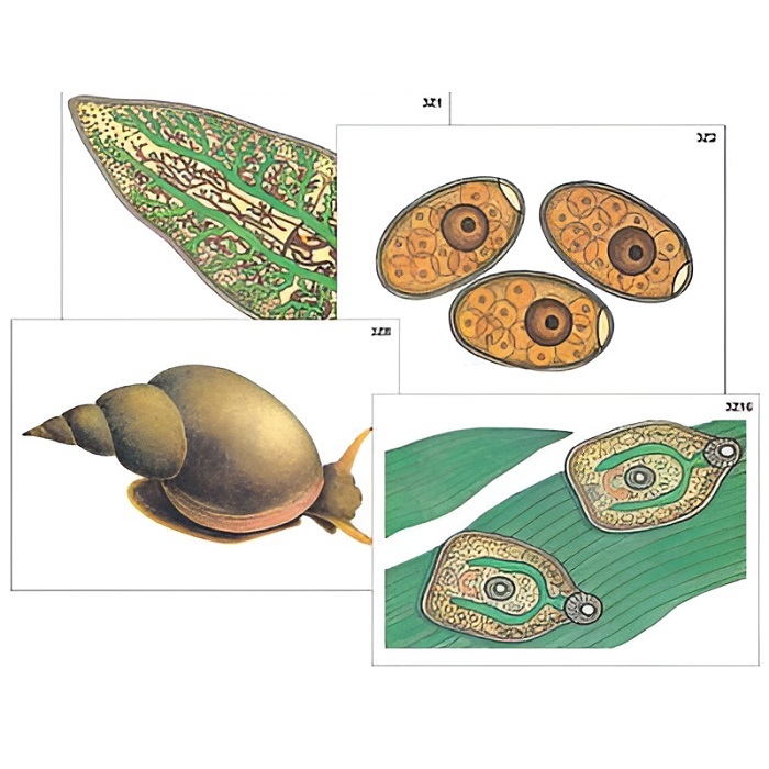 Модель-аппликация "Циклы развития печеночного сосальщика и бычьего цепня" (ламинированная)