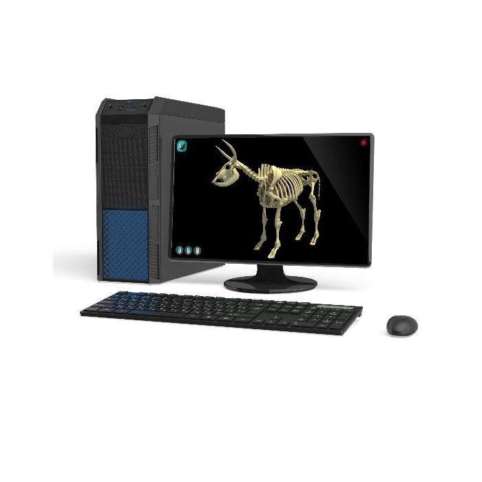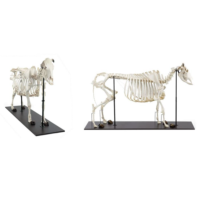 Анатомическая модель-имитатор скелета коровы предназначена для приобретения и закрепления учащимися образовательных учреждений ветеринарного профиля базовых знаний об анатомическом строении сельскохозяйственных животных. Данная модель-имитатор содержит в себе максимально реалистичное представление всех костей коровы соединенных в скелет на пространственной скрытой раме и закрепленную на мобильном подмареннике с подсветкой и встроенной системой воспроизведения звуковой информации о строении скелета и основных анатомических особенностях.