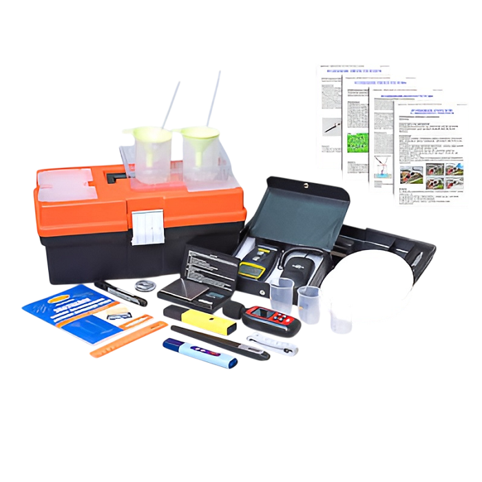 Представляет собой комплект цифровых датчиков в виде портативных приборов по каждой измеряемой характеристике, лабораторной посуды, необходимой для проведения исследований, набора карточек с разработанными постановочными исследовательскими задачами и нормативами, и учебно-методическое пособие (автор канд. геогр. наук И.Л. Марголина). Методика постановочных задач адаптирована для проектных исследований в среднем образовании и включает в себя как типичные исследования по оценке качества окружающей среды (водных объектов, воздушной среды, почвенного покрова, осадков, снежного покрова), так и современные направления экологических исследований по оценке экологического состояния жилых и учебных помещений. Приборная и адаптированная учебно-методическая составляющие пособия позволяют учащимся реализовать самостоятельные проектные исследования по направлениям отдельных предметных дисциплин и междисциплинарные (комплексные) проекты.