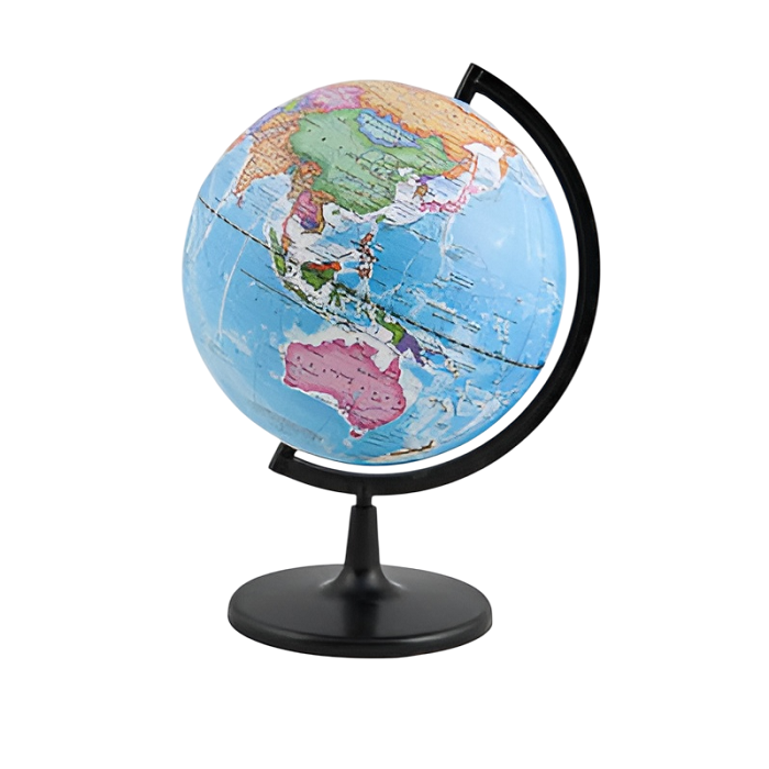 Предназначен для демонстрации при изучении курса географии. Представляет собой модель земного шара с политической картой. Глобус политический дает возможность продемонстрировать расположение на поверхности земного шара государств, наиболее крупных городов.