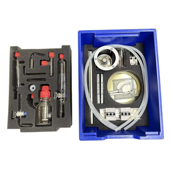 При правильной сборке набора, все образующиеся соединения вступают в контакт только со стеклом и тефлоном, что обеспечивает практически полную безопасность опытов. Реакцию выделения газа можно легко прервать на любом этапе.