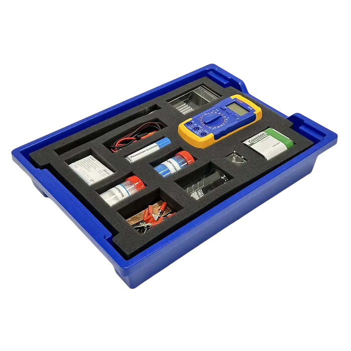 Комплект лабораторного оборудования «Электрохимия» укомплектован в удобный и прочный пластиковый контейнер, который облегчает его переноску и хранение.