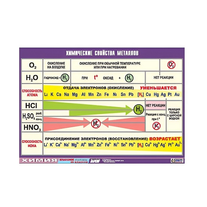 Таблица демонстрационная "Химические свойства металлов" (винил 70x100)