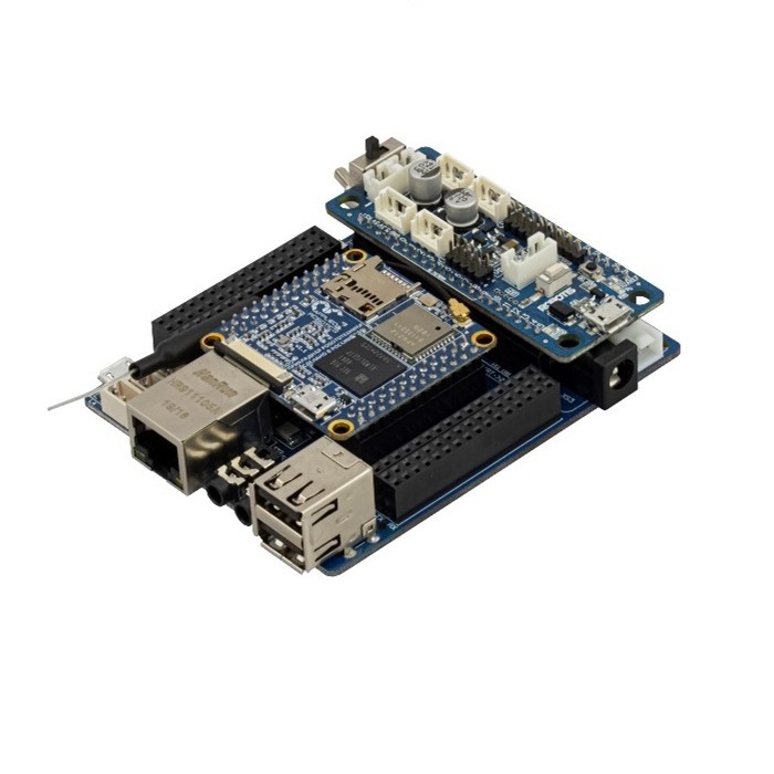 3) В состав набора входит одноплатный микрокомпьютер с ОС Linux, встраиваемый в периферийную плату робототехнического контроллера. Применение встраиваемого микрокомпьютера позволяет увеличить вычислительные возможности робототехнического контроллера, изучать ОС типа Linux, разработку ПО с помощью средств разработки на языках С/С++, Python и т.п.