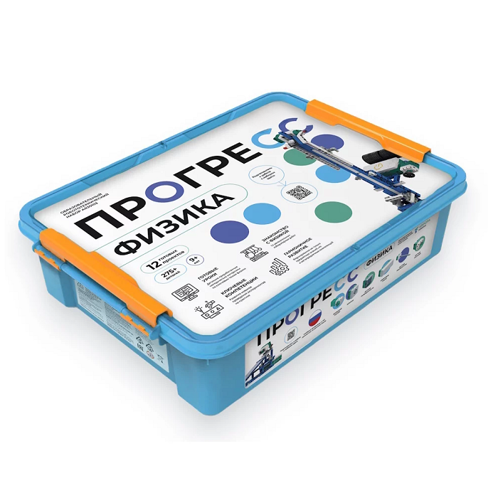 Набор Robotics Прогресс Физика — комплексное образовательное робототехническое STEAM решение для практического закрепления школьных знаний по Физике по таким темам, как механика, динамика, радиоволны, оптика, гравитация и другие в основной школе.