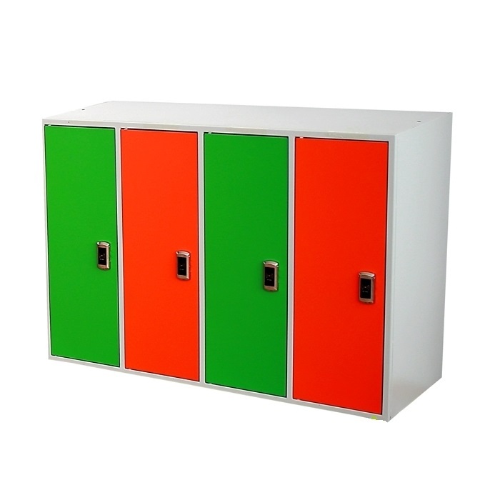 Двери шкафа закрываются на электронный замок. Каждя ячейка укомплектована перекладиной и двумя крючками для верхней одежды.
