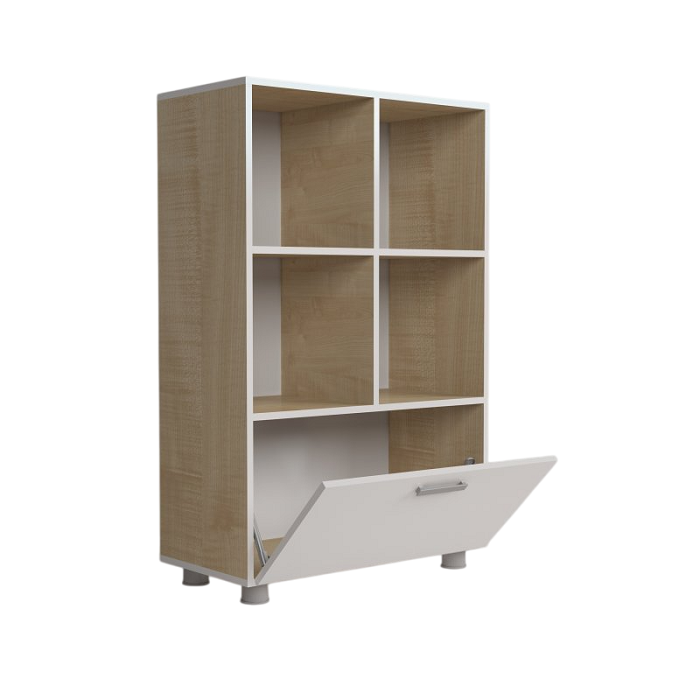 Изделие подойдет для оснащения школьного или офисного кабинета. На полочки можно сложить малогабаритные предметы, книги или элементы декора. Имеется несколько открытых и закрытых полочек. Дверцы оснащены доводчиками для комфортного, долговечного использования. Ножки изделия выполняются из износоустойчивого и прочного пластика, благодаря этому они не царапают пол и обеспечивают устойчивость модулю.