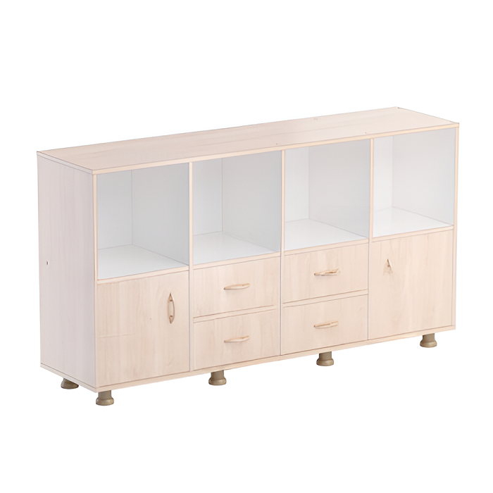 Главная Каталог Кабинет Математики и Информатики Мебель для кабинета математики Шкафы Шкаф-стеллаж верхняя часть без дверок, нижняя часть с 4 - мя ящиками и 2-мя дверками (бук/белый)