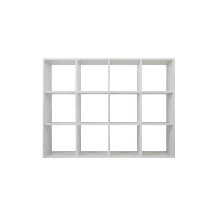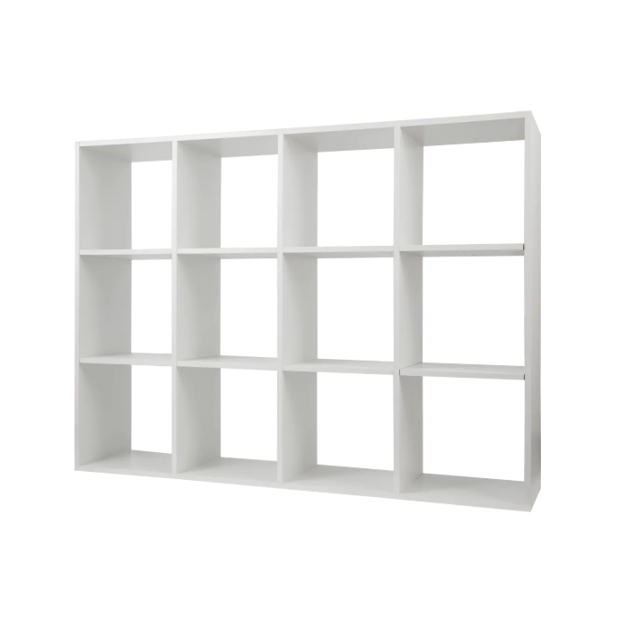 Стеллаж на 12 секций предназначен для организации хранения в кабинете. Возможны два варианта установки: на пол (при желании можно приобрести ножки) или на стену. При напольной установке стеллаж может использоваться в качестве перегородки для зонирования. Изготовлен из ламинированной ДСП толщиной 16 мм с гладким покрытием. Цвет — белый. Ширина — 104,9 см, высота — 139,2 см, глубина — 31,7 см.