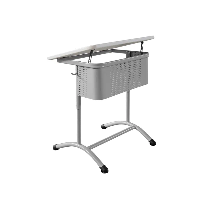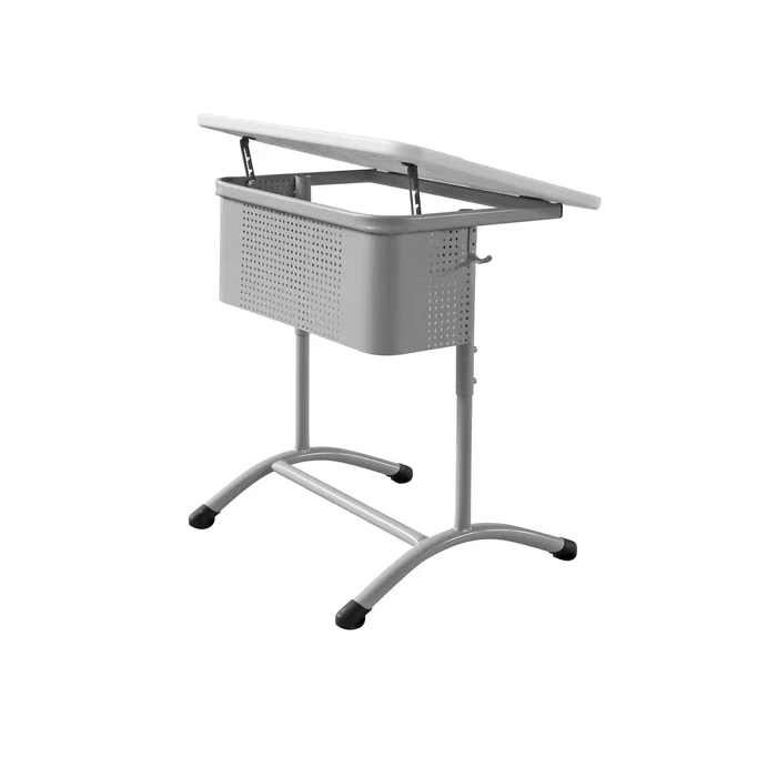 Школьный одноместный стол с наклонной пластиковой столешницей.