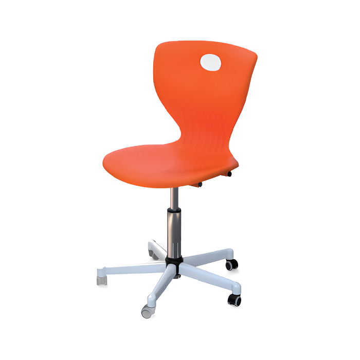 Сиденье и спинка ученического стула представляют собой сплошную литую конструкцию из сверхпрочного полипропилена, пригодного для вторичной переработки. Спинка имеет эргономичную форму с поясничным выступом, что позволяет сидеть в разных положениях и обеспечивает комфорт во всех направлениях. Имеется механизм бесступенчатой регулировкой высоты.