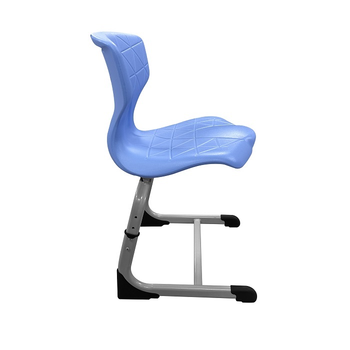 Школьный стул модели имеет надёжный стальной каркас из плоскоовальной трубы.