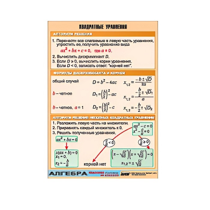 Таблица демонстрационная "Квадратные уравнения" (винил 70х100)