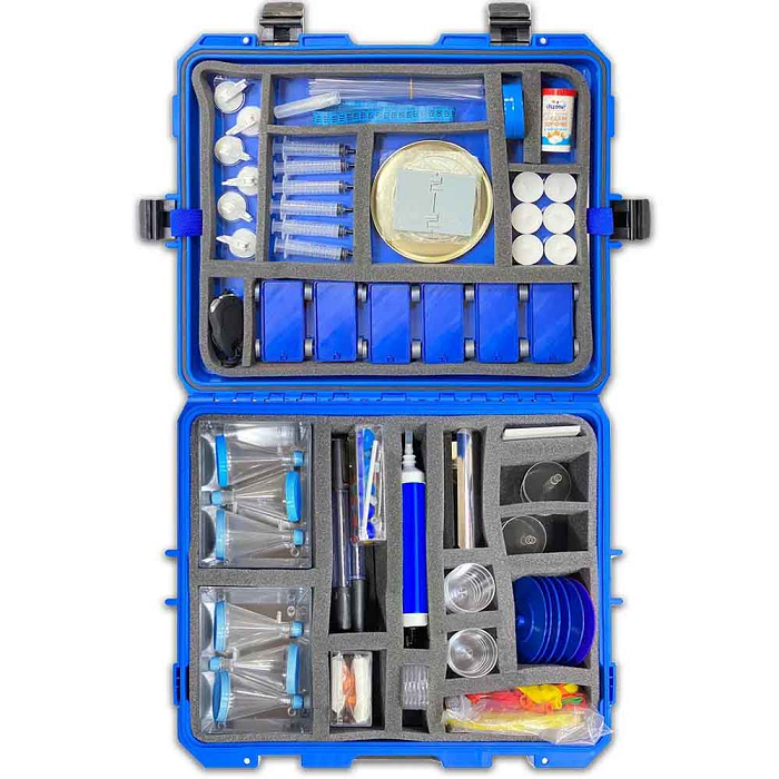 Комплект лабораторного оборудования «Воздух» укомплектован в удобный пластиковый чемодан, что облегчает его переноску и хранение.