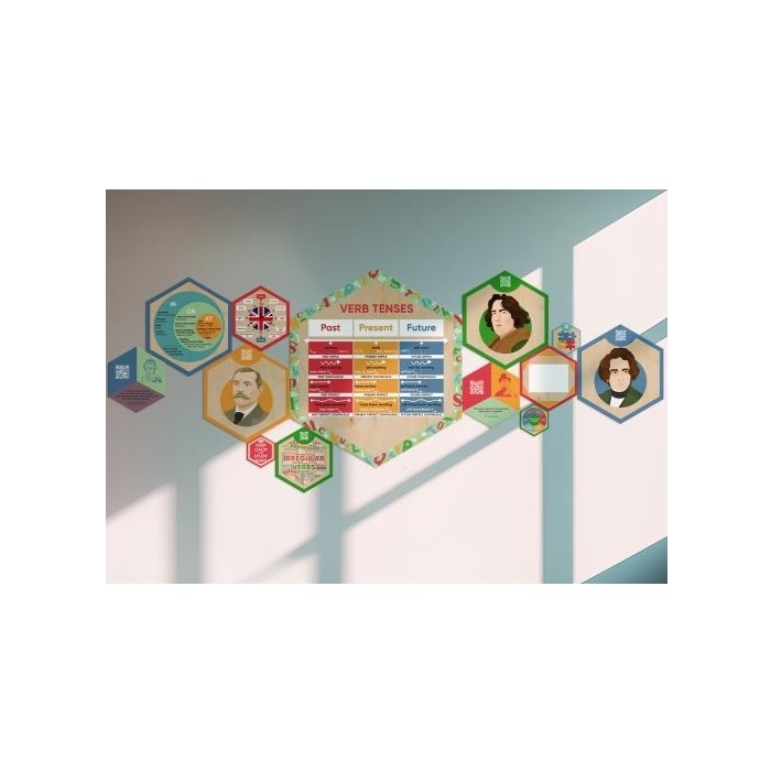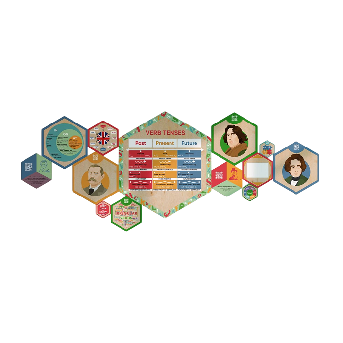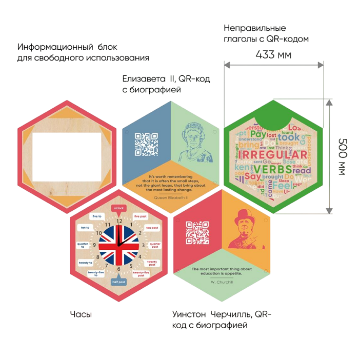 В комплект входит 13 шестигранников разных размеров. Каждый содержит обучающую информацию. Благодаря QR-кодам дети могут подробнее узнать о выдающихся личностях, изображённых на портретах, правила и интересные факты - стоит только навести на них телефон.