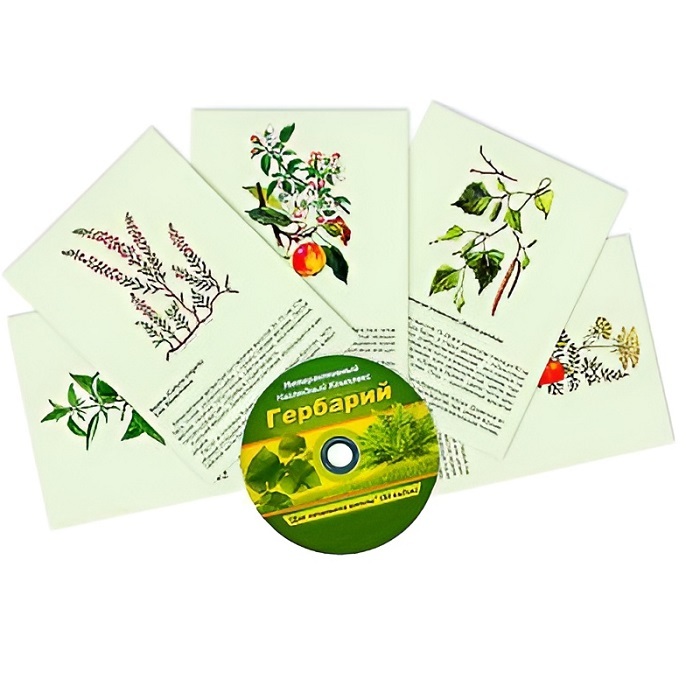 В составе комплекса представлены засушенные и приклеенные на гербарные листы части растений. Аннотации на гербарных листах содержат видовое название, семейство, информацию о строении растения, его свойствах, территории распространения и сопровождаются иллюстрациями. Информация на диске дает более обширное представление о каждом растении, содержит дополнительные сведения, интерактивные задания и иллюстрации.