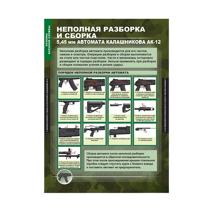 - Неполная разборка и сборка 7,62 мм. модернизированного автомата Калашникова.