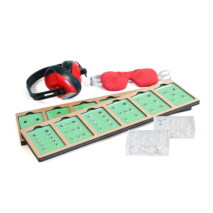 Оригинальный методический комплект «Сенсорные пластины» направлен на развитие тактильного восприятия и различения с усложнением в виде когнитивной нагрузки (счет, выстраивание числовых последовательностей). Рекомендован для индивидуальной работы с детьми от 5 лет. Комплект предполагает проведение упражнений, как при полном сенсорном контроле, так и при условно-изолированном тактильном канале. В этом случае, когнитивная нагрузка создает условия для так называемых осмысленных тактильных упражнений.