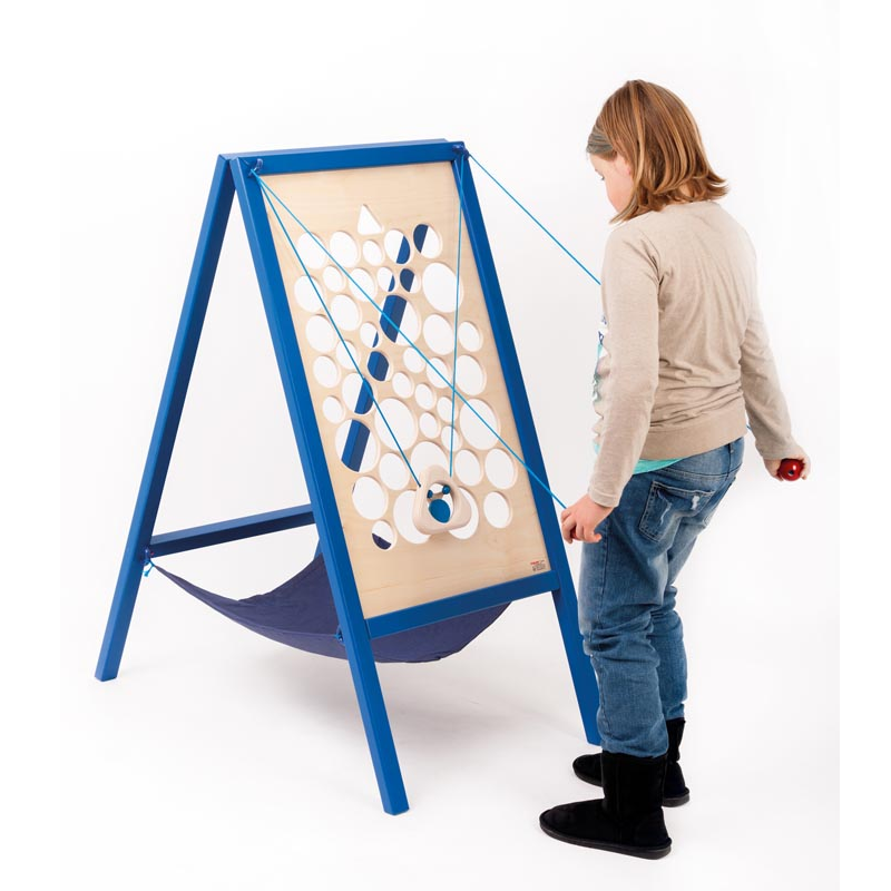 Мольберт с вырезанными в нем отверстиями разной формы. Игрок должен доставить от старта к финишу фишку, уложенную на подставку, которая двигается при помощи двух длинных шнуров. Приходится лавировать между отверстиями, чтобы не уронить фишку. Особенно интересен парный вариант работы, когда шнуры выдают двум разным игрокам.