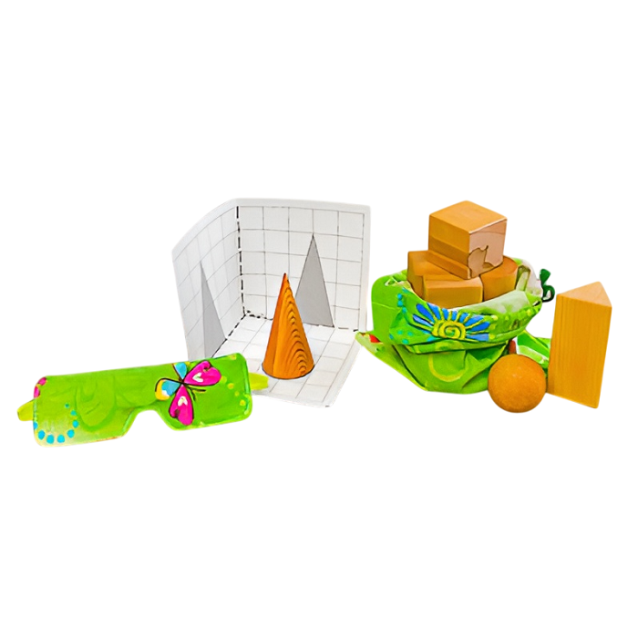Игровой комплект предназначен для сенсорного развития дошкольников и младших школьников, способствует развитию тактильной чувствительности, пространственных представлений. Предлагаемые в наборе карточки с изображениями проекций фигур в трех плоскостях помогут ребенку освоить основы конструирования и геометрии.