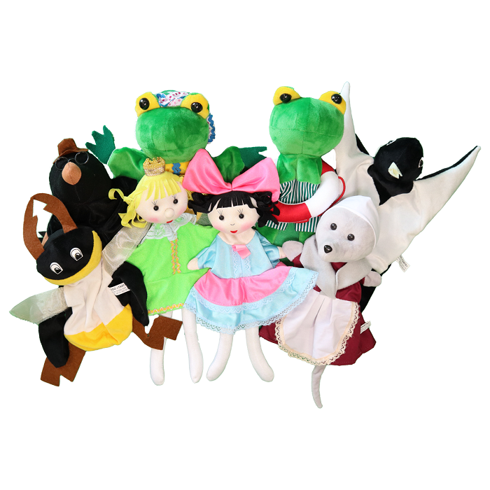 Домашний кукольный театр на руку состоит из 8 персонажей: Дюймовочка, Жаба-мама, Жаб-сын, Майский жук, Старая мышь, Крот, Ласточка, Принц-эльф.