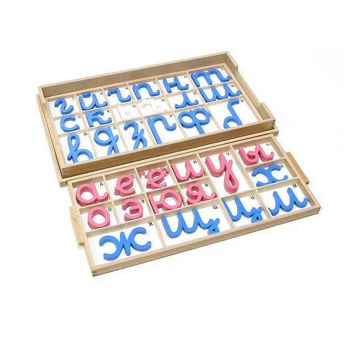 Главная Каталог Подготовительная группа и детский сад Монтессори Русский язык Большой подвижный деревянный алфавит - прописные прямые буквы