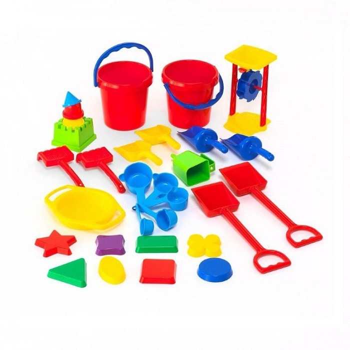 Супер большой набор для игр с песком как в группе, так и на открытом воздухе! Все, что так или иначе связано с песком: ведерки, мельница, совочки, грабельки, лопатки, воронка, сито, ковшички, формочки-башенки, фигурные формочки. В общем, все, что вы можете видеть на фото!