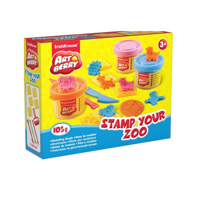 Пластилин на растительной основе Artberry/Stamp Your Zoo 3 бан./35 г со штампами