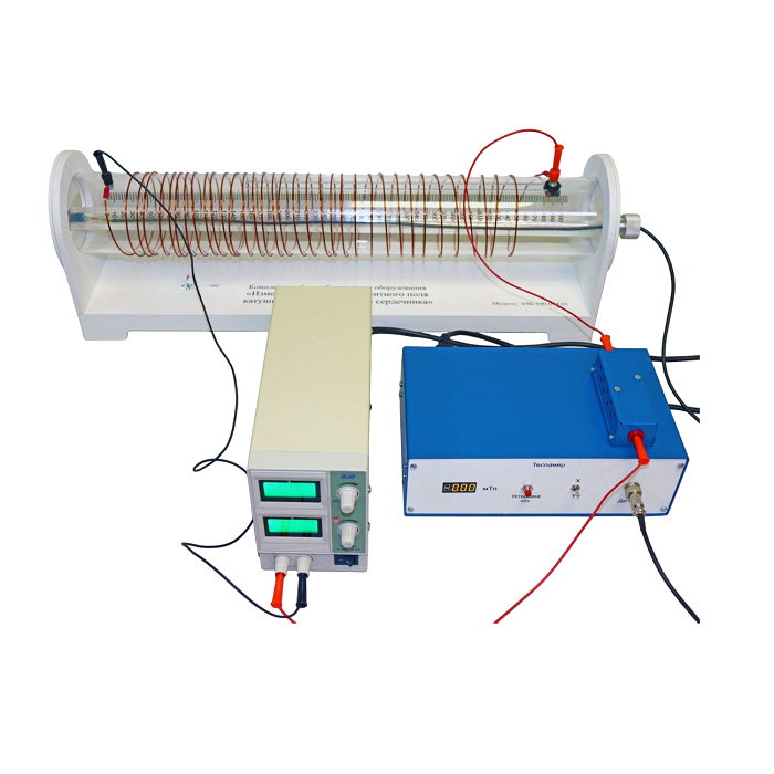 Комплект учебно-лабораторного оборудования предназначен для проведения лабораторно-практических занятий по дисциплине "Физика: электричество и магнетизм" с целью изучения зависимости индукции магнитного поля катушки индуктивности от силы тока и длины катушки.
