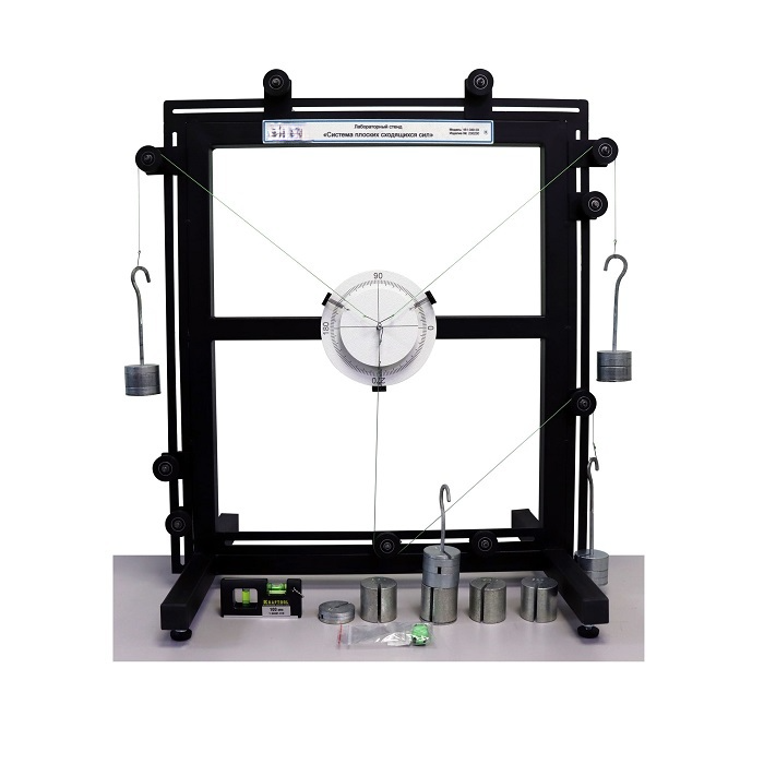 Учебное оборудование предназначено для проведения работ при изучении раздела «Теоретическая механика» курса технической механики. Учебный стенд позволяет изучить плоскую систему сходящихся сил и экспериментальным методом определить величину и направление равнодействующей силы.
