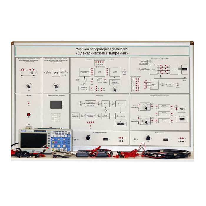 Учебная лабораторная установка «Электрические измерения» представляет собой рабочее место для бригады студентов из двух человек и предназначена для проведения лабораторных занятий по дисциплинам «Электрорадиоизмерения», «Электротехнические измерения», «Измерительная техника», «Электрические измерения», «Метрология и радиоизмерения» и другим учебным дисциплинам, изучающим принципы электрических измерений.