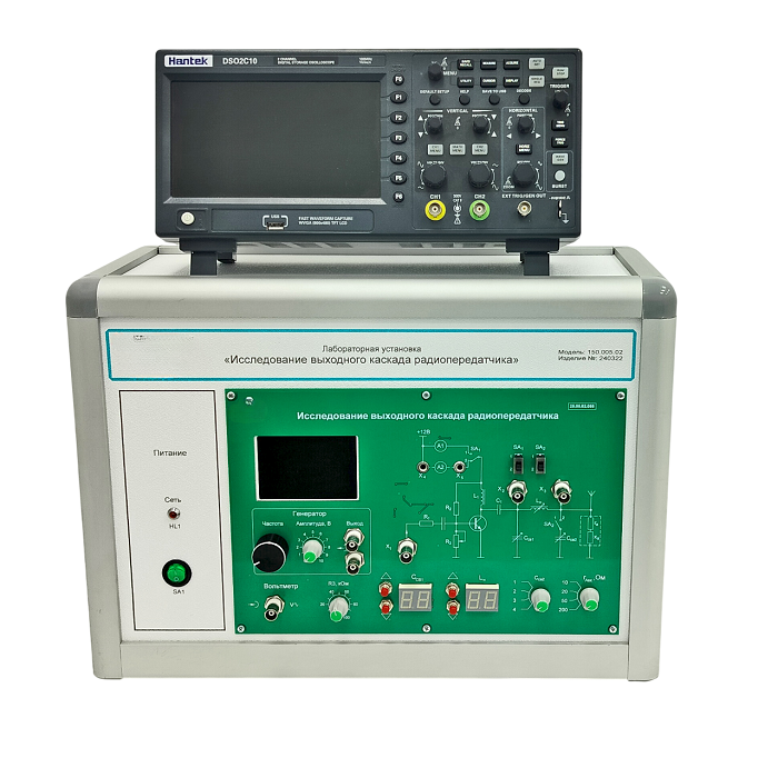 Лабораторная установка формирует одно рабочее место и обеспечивает проведение экспериментов по изучению принципов согласования выходного каскада передатчика с антенной, исследованию регулировочных и нагрузочных характеристик выходного каскада при различных способах подключения антенны.