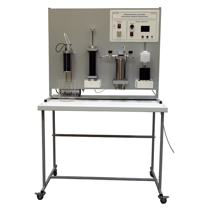 Установка предназначена для проведения лабораторных работ для студентов, обучающихся в высших и средних учебных заведениях. Установка позволяет изучить процессы, при котором один из параметров газа остается постоянным. Установка выполнена согласно ТУ 32.99.53–001–09519063– 2019 и имеет соответствующий сертификат производителя ГОСТ Р и сертификат качества ИСО 9001-2015 на данный вид продукции.